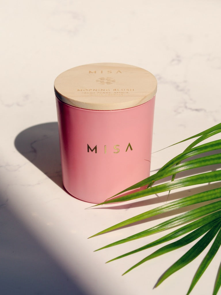 Start your day on the right note with Morning Blush. Luscious Pears meet woody Amber and White Freesia for a happy halo that lingers through the day.