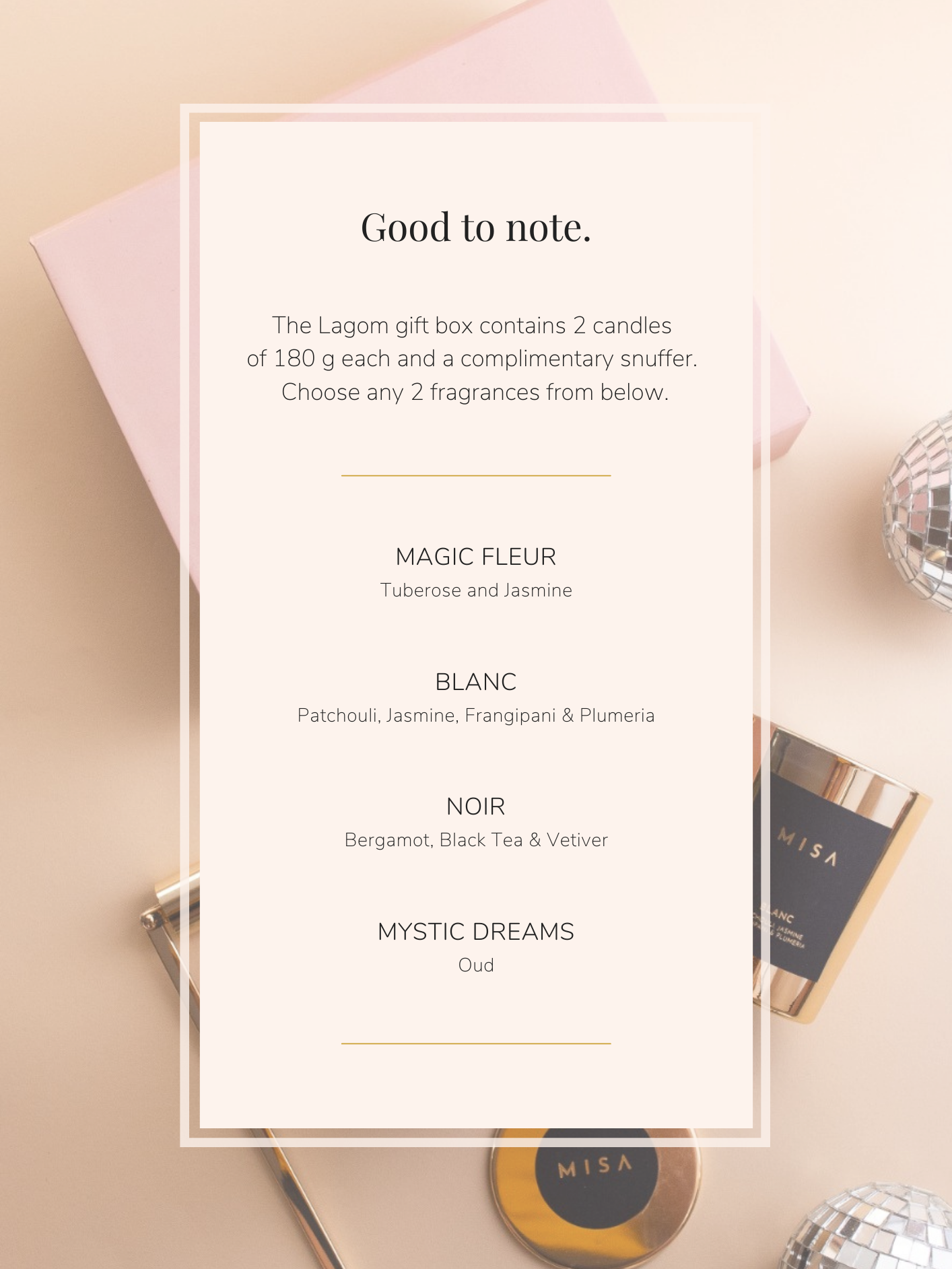 Lagom is a wonder-gift. Luxurious, formal and versatile, it works its charm as a wedding favour, housewarming present or for corporate impressions. Choose any 2 Blush candles and the complimentary snuffer will complete the set (and magic).